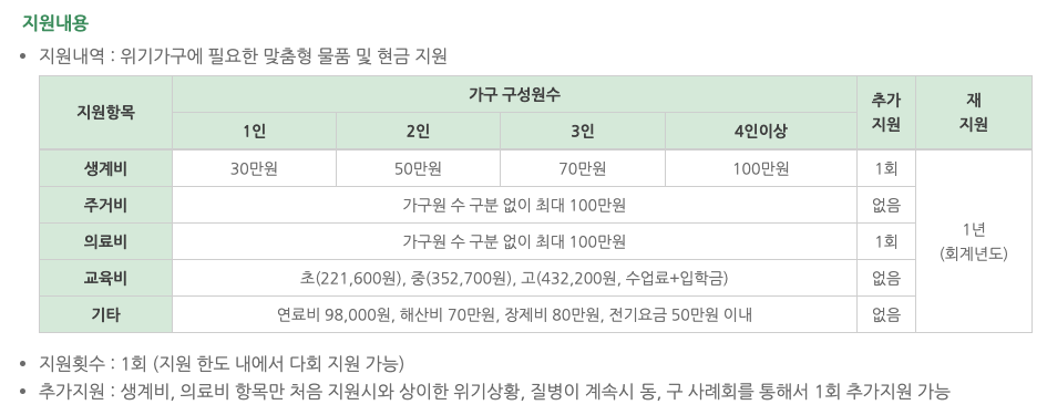 1. 지원항목 : 위기가구에 필요한 맞춤형지원