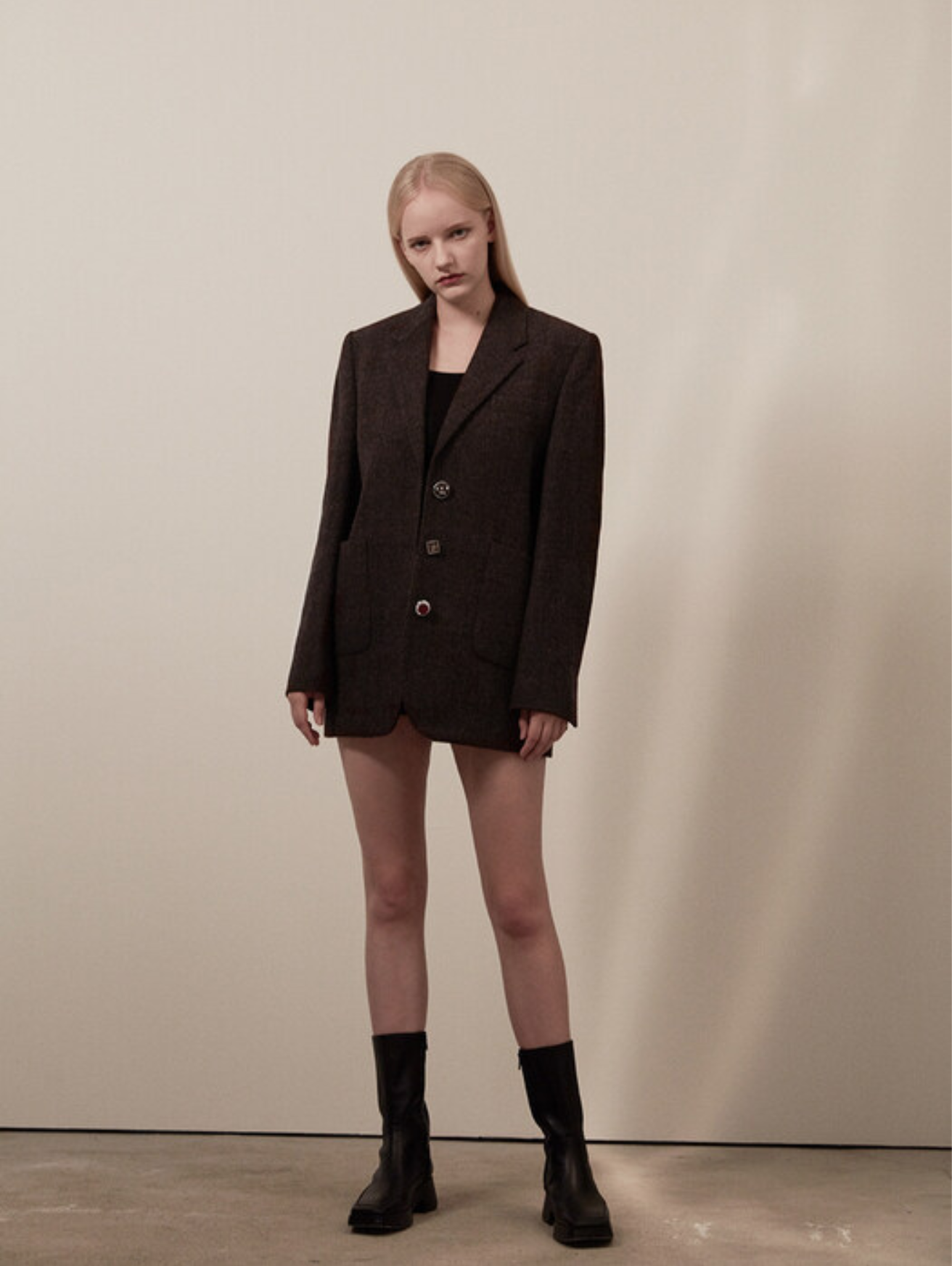 슬기님이 착용한 자켓은 MUDIDI(무디디)의 Custom button jacket, Brown 색상입니다.