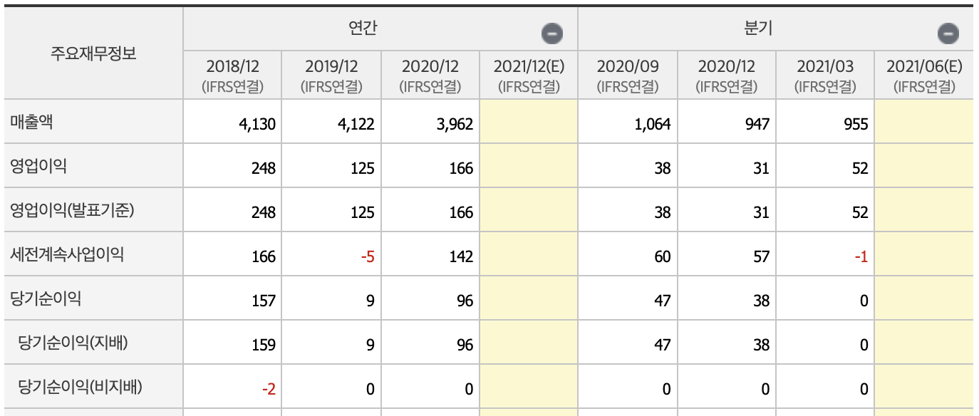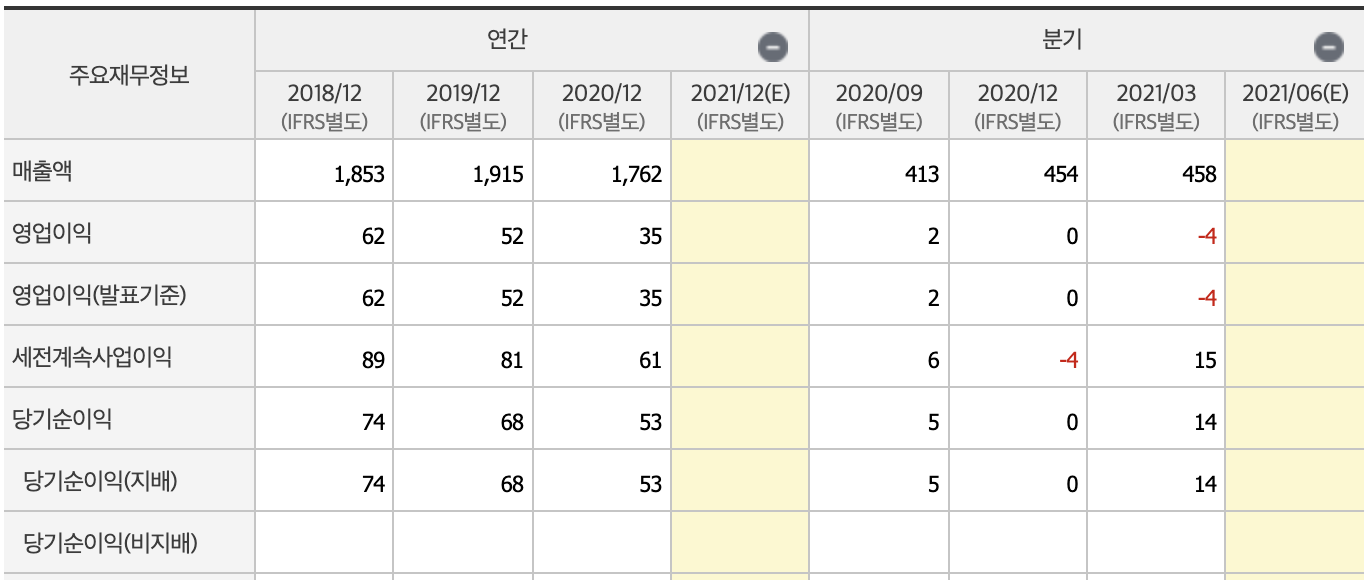 매출액은 소폭 감소하고 있고, 부채비율, 자본유보율 면에서도 매력적으로 보이진 않습니다.