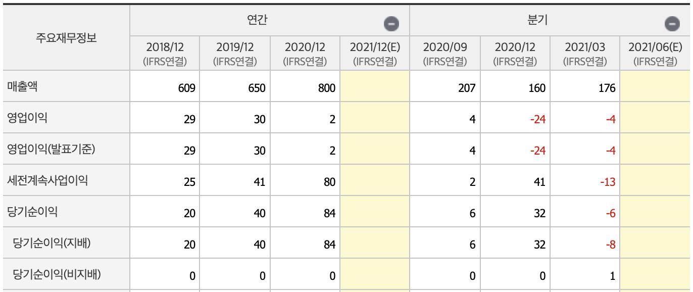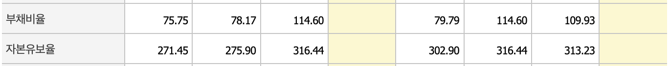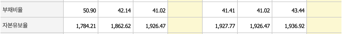 매출은 지지부진하지만 부채비율과 자본유보율 면에서는 안정적인 모습입니다.
