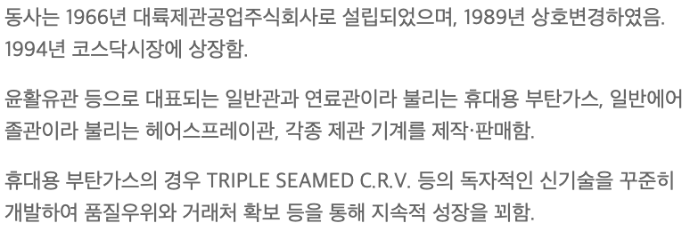 일반관, 에어졸관 등 제관업에서 안정적인 매출을 올리고 있습니다.